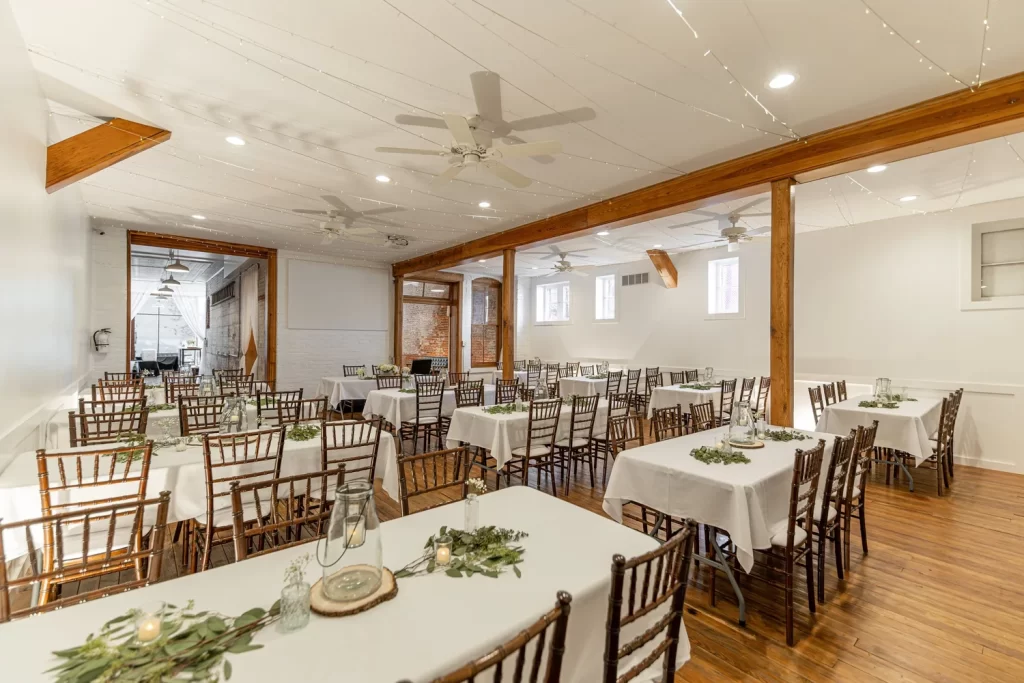 Originally constructed as a hardware store built in 1870, this 149 year-old building has been transformed and restored by owner Mike Smith back to its original 1800s architecture. Mike spent about two years restoring the building, creating Headquarters Historic Event Center, and his personal loft/residence on the second floor. The building features rustic hardwood floors, original tin ceilings, beautiful exposed brick, and will give you the perfect backdrop for your next event.
